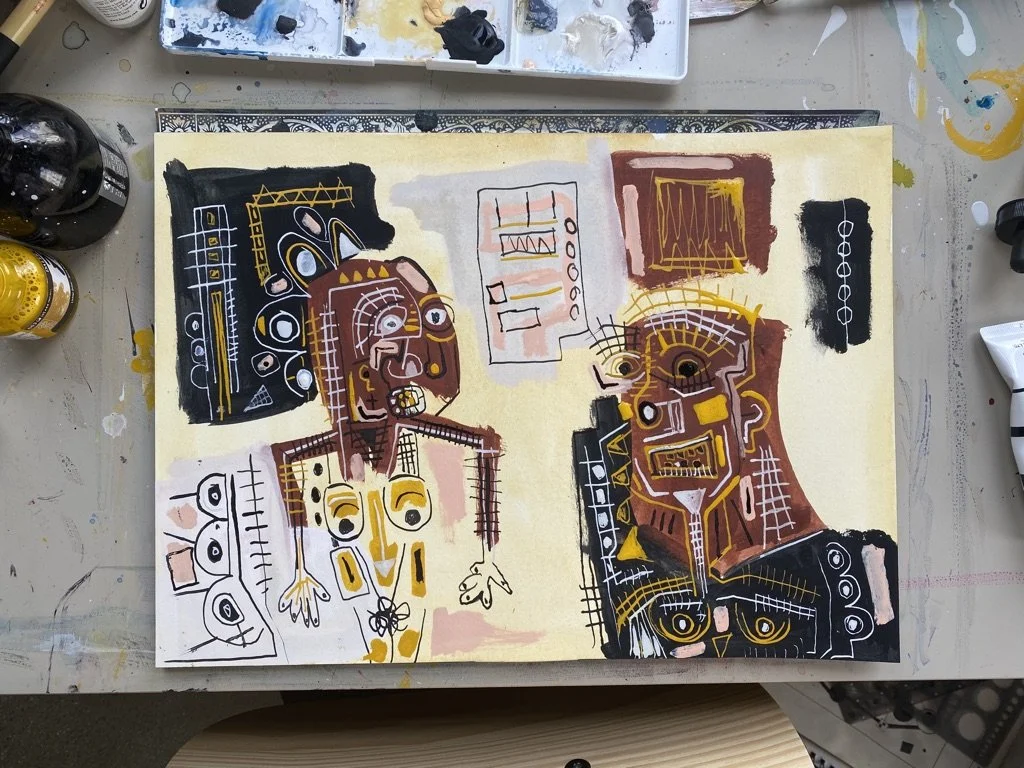 An array of figures often paired facing off against each other with space in between. This series represents a time for me when I was seeking to understand the methods that other artists used to paint. I was investigating different ways to show human qualities that can sometimes be singular faces or with bodies. The inspiration comes from artists that led me to pursue emulating them. So in the spirit of de Kooning, Twombly, and Picasso, I learned through this series that emulating my predecessors was harder than I thought. I moved out of this series once I felt like I found my own mastery of it.